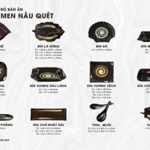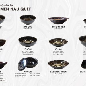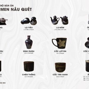 | Tên | Bộ Chén Đĩa Men Nâu Quét | Xuất xứ | Gia Lâm – Bát Tràng – Hà Nội |