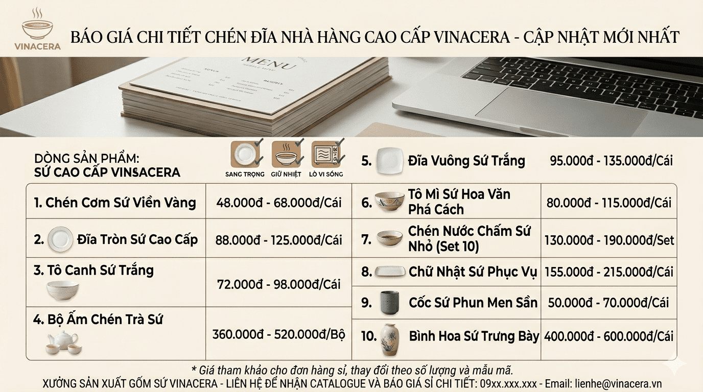 Trong ngành nhà hàng, việc chọn lựa bộ chén đĩa phù hợp không chỉ đơn thuần là về mặt thẩm mỹ mà còn phản ánh phong cách, chất lượng dịch vụ của quán. Báo giá chén đĩa nhà hàng mới nhất luôn là một trong những yếu tố được các chủ doanh nghiệp quan tâm hàng đầu để đảm bảo sự cạnh tranh trên thị trường. Với sự đa dạng về mẫu mã, chất liệu và thương hiệu, việc tìm kiếm nguồn cung cấp uy tín và báo giá hợp lý trở nên ngày càng quan trọng. Bài viết này sẽ giúp bạn có cái nhìn tổng thể, chi tiết về các yếu tố ảnh hưởng đến giá cả, xu hướng mới nhất trên thị trường và các mẹo chọn mua phù hợp.