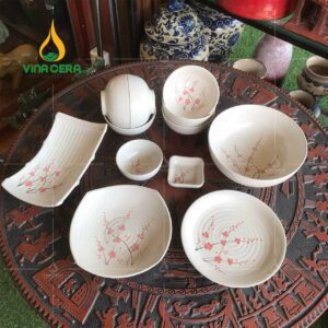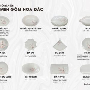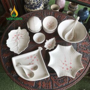 Sản phẩm với tone màu trắng ngà giản dị, mộc mạc cùng họa tiết hoa đào hồng tinh tế. Bộ chén đĩa thực sự làm nổi bật các món ăn, khiến cho người nhìn cảm giác dễ chịu.