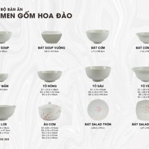 | Tên | Bộ Chén Đĩa Men Gốm Hoa Đào | Xuất xứ | Gia Lâm – Bát Tràng – Hà Nội |
