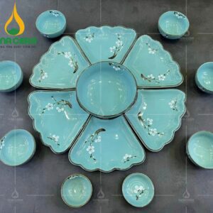 | Tên | Bộ Chén Đĩa Sứ Hoa Mặt Trời Men Ngọc Vẽ Hoa | Xuất xứ | Gia Lâm – Bát Tràng – Hà Nội |