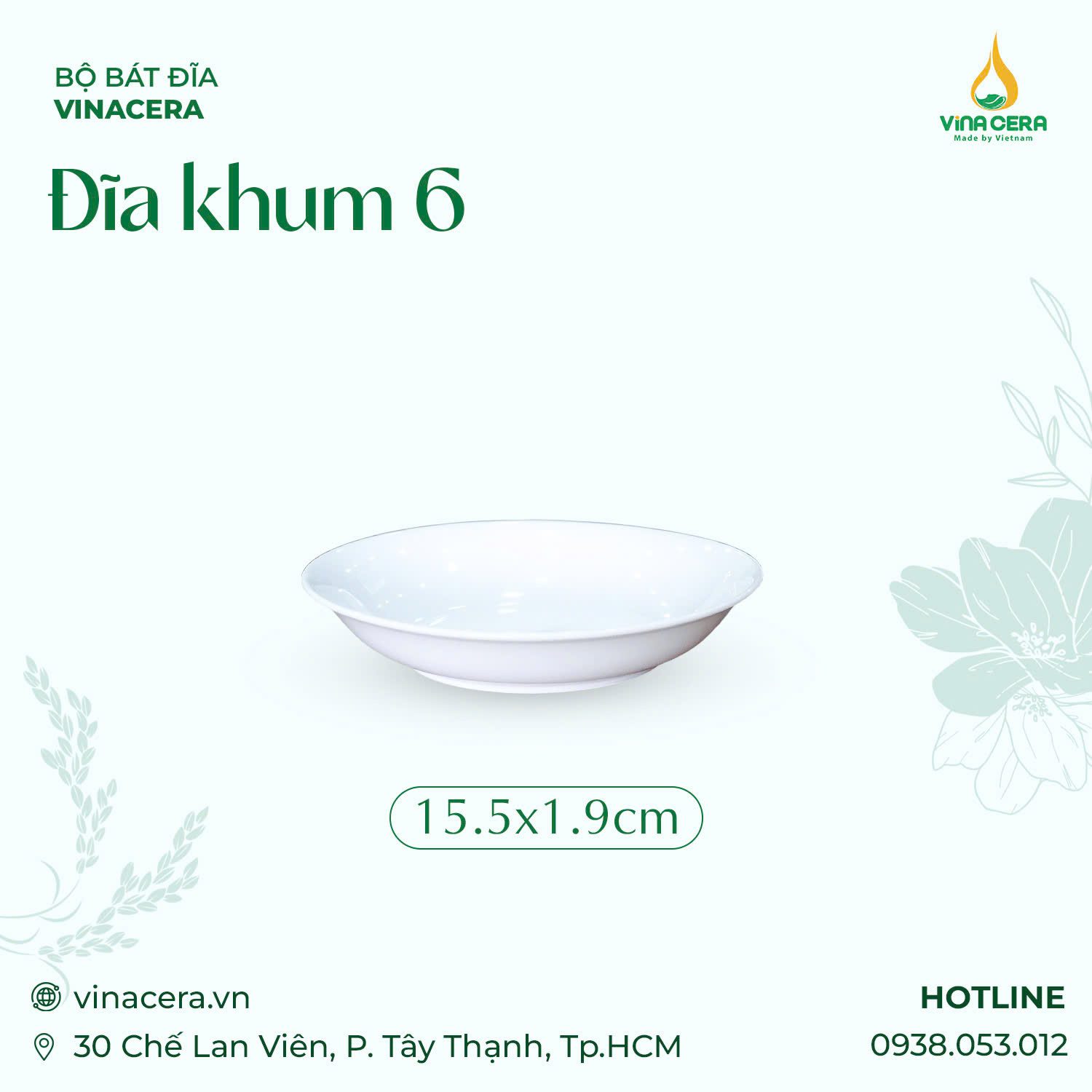 Đĩa Khum 6 Sứ Trắng Cao Cấp Vinacera (15.5 x 1.9cm) là sản phẩm nhỏ gọn, tinh tế, phù hợp cho gia đình, quán ăn, nhà hàng và khách sạn nhờ thiết kế hiện đại và tính ứng dụng cao.