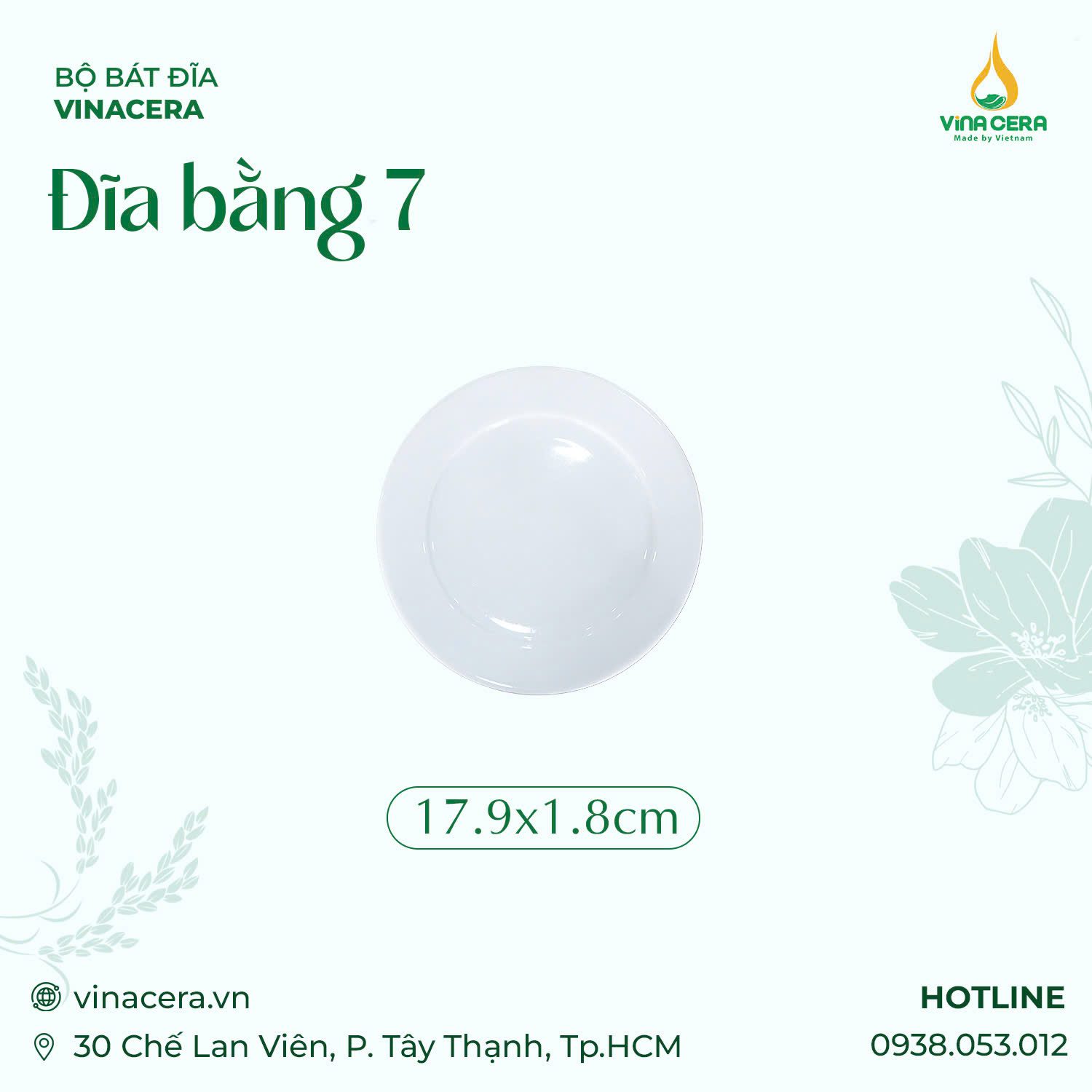 Đĩa Khum 7 Sứ Trắng Cao Cấp Vinacera (17.9 x 1.8cm)