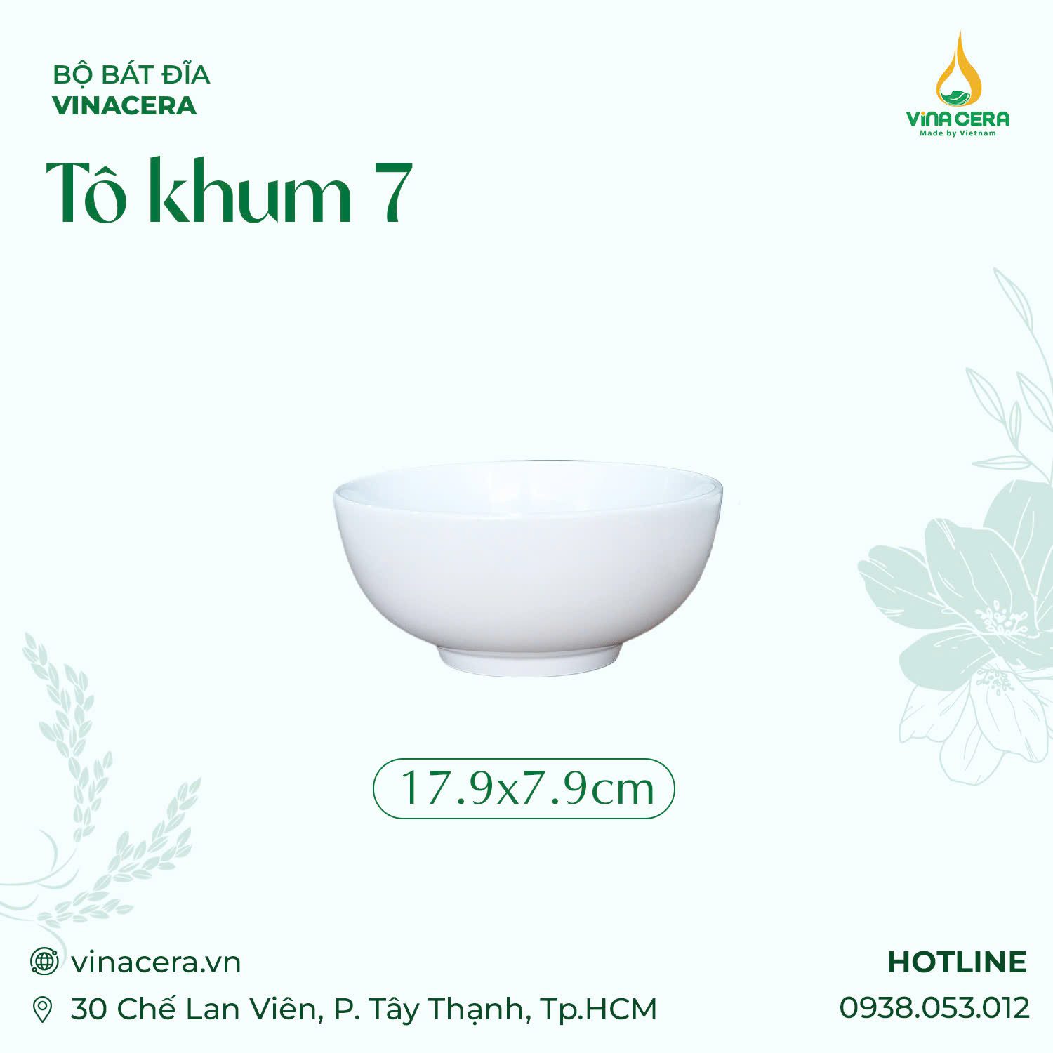 Tô Khum 7 Sứ Trắng Cao Cấp Vinacera (17 x 9 x 7.9cm)